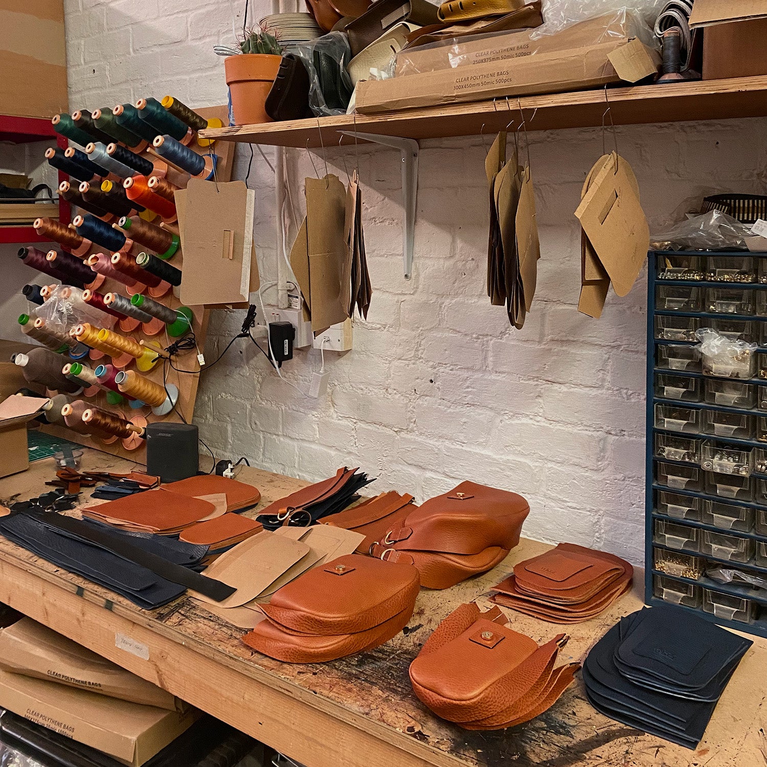 We work with an entrepreneurial maker, based in Margate, specifically set up to work with independent and emerging designers. Like us, she loves the small scale and interesting and is always up for a challenge; our more complex styles such as our best selling Loe Bags and Wood Drawstrings are made here.